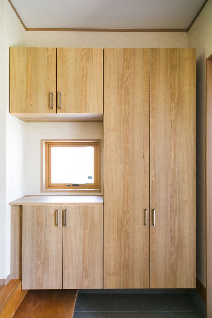 玄関に壁一面のシューズクローゼット