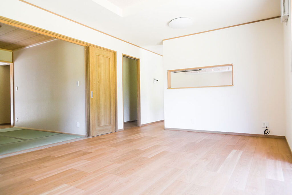 和室からリビングを望む