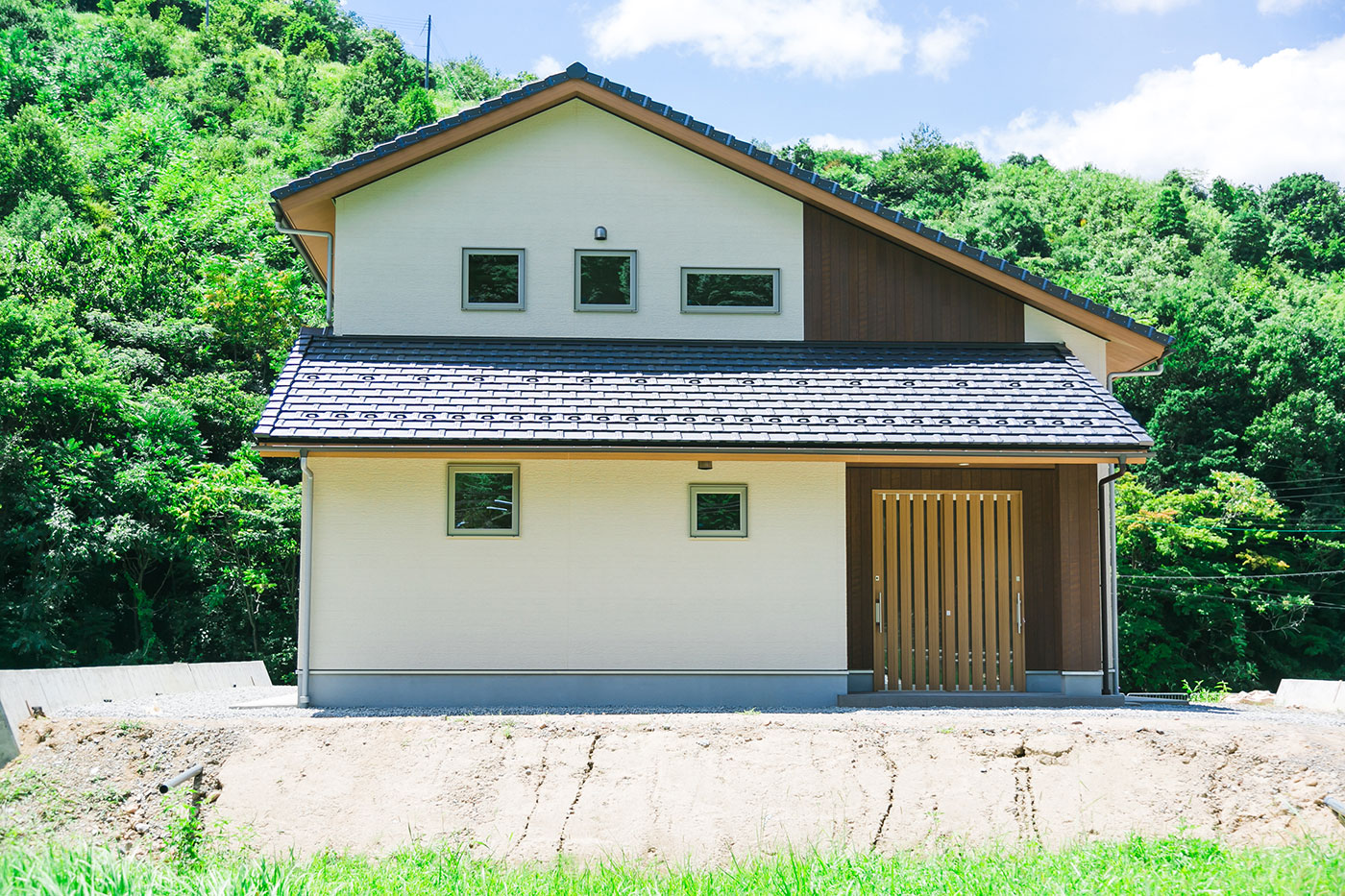 緑の大地と青い空に映えるマイホーム